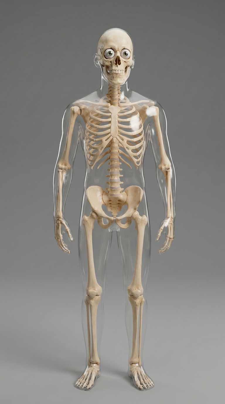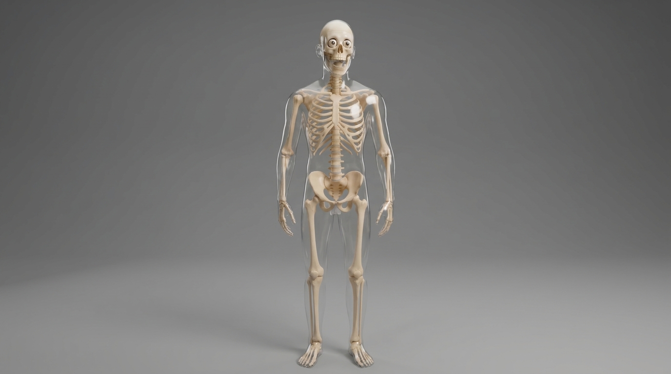 Prompt and image. Prompt: I want to make videos like this YouTube channel: https://www.youtube.com/@dr_data_dr. Can you analyze this channel, especially its short videos? This channel mainly focuses on body health and physical capabilities using 'what if' style scenarios. I want your help generating similar video ideas. Once I pick one idea, you will write a complete script that fits within a 60-second YouTube Short and break the script into multiple scenes, each exactly 8 seconds long for VEO 3. For every 8-second scene provide the exact voice-over line and a detailed VEO 3 video generation prompt. Important requirements: I will provide a main character image (a transparent skeleton character) as a reference and the same skeleton should be used in all videos. The explanation must be shown visually on the character in a 3D animation style. No on-screen text or captions should appear. No background music and no generated voice, only the provided voice-over. You may show body parts such as kidneys, lungs, or organs if required. Every VEO 3 prompt must clearly mention that the content is for educational purposes only and must avoid anything that violates VEO 3 policies. When the result comes, give the output in one line for each scene. Example: Scene 1 (0:00–0:08): Voice-Over: After a week, your energy crashes. Your organs are exhausted and begging for just one glass of water. Veo Prompt: Use the provided reference image of the transparent skeleton character in a 3D animation style; the skeleton slumps its shoulders looking extremely lethargic and exhausted, the internal organs (stomach, kidneys, brain) dim to a very low dull light, and the skeleton drops the soda can to the floor; no on-screen text, no audio, educational purposes only.
